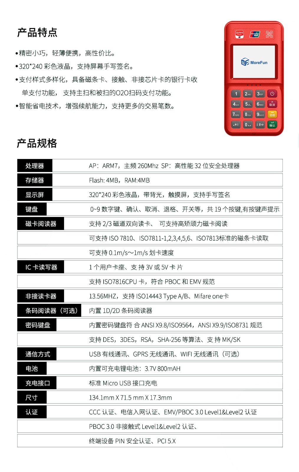 首页>>上海产品中心>>上海手持无线POS 上海电银支付-4G+扫码枪 高配版 * 性能优越:32位高性能ARM11安全CPU;整机通过业内更先进的PCI PED4.X 安全认证及国内受理终端PIN输入设备安全评估检测认证,多项措施保障金融交易的安全;* 时尚外观:外形小巧携带方便,高抗跌落性能、宽工作温度、防水防尘设计、外壳坚固耐刮、户外携带式作业更加耐久可靠。* 通讯备份:支持2G-3G扩展;* 超长续航:3.7V-800毫安稳定续航能力,智能电池管理保证持续工作18小时,待机72小时。 标准配置 返 回